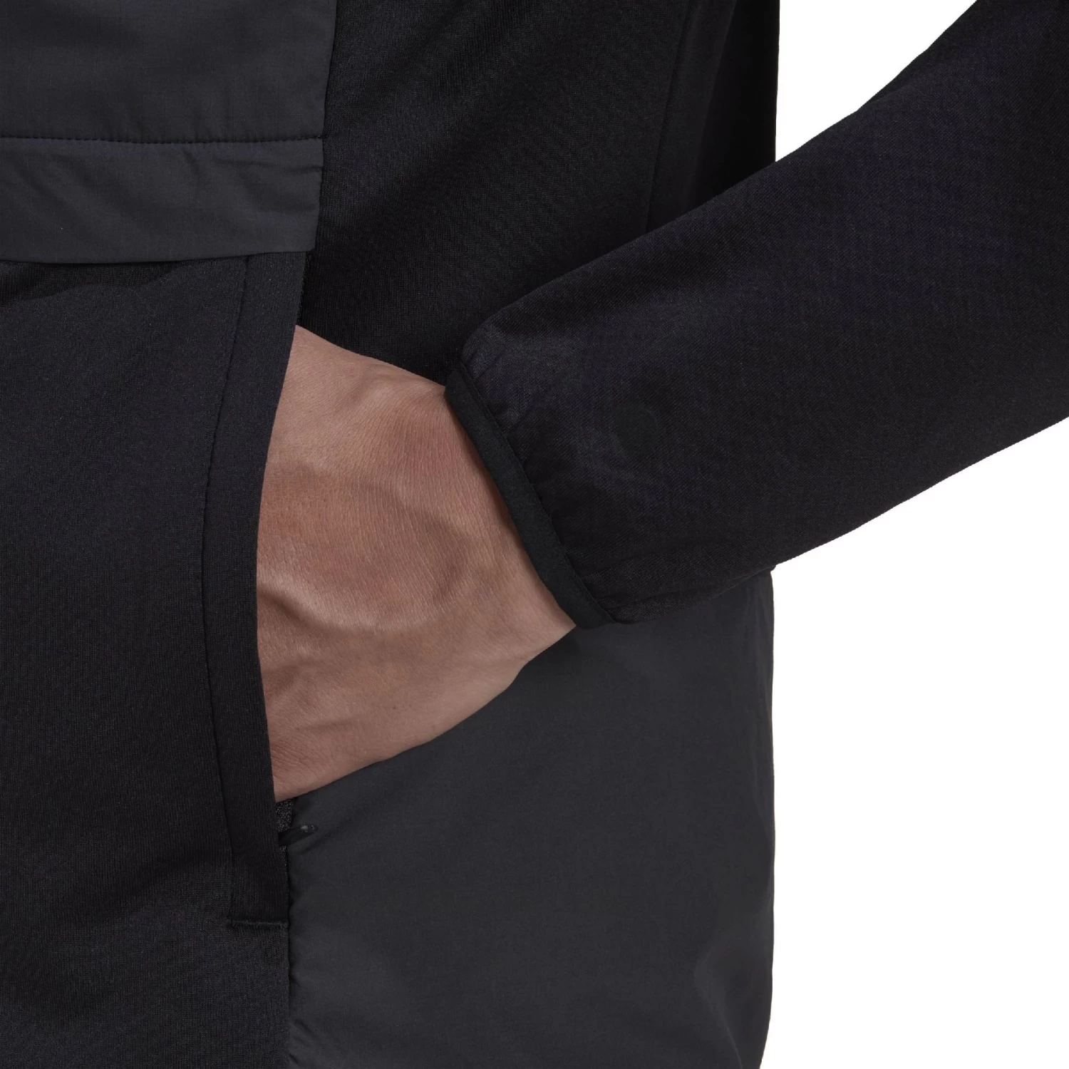 For you, the season does not stop even when the weather conditions get worse. With this adidas Five Ten Flooce wind jacket it does not have to. It’s your mountain biking buddy for windy trails and crisp weather. Its adidas WIND.RDY design doesn’t give wind a chance with its combo of lightweight Flooce – comfy fleece made of small loops – and overlays in the front and upper arm area. It also has a slim cut and scores with a clean look and enough room for elbow protectors. The helmet-compatible hood guarantees you extra warmth. The whole thing is made perfect by the reflective details, which provide better visibility in the dark.